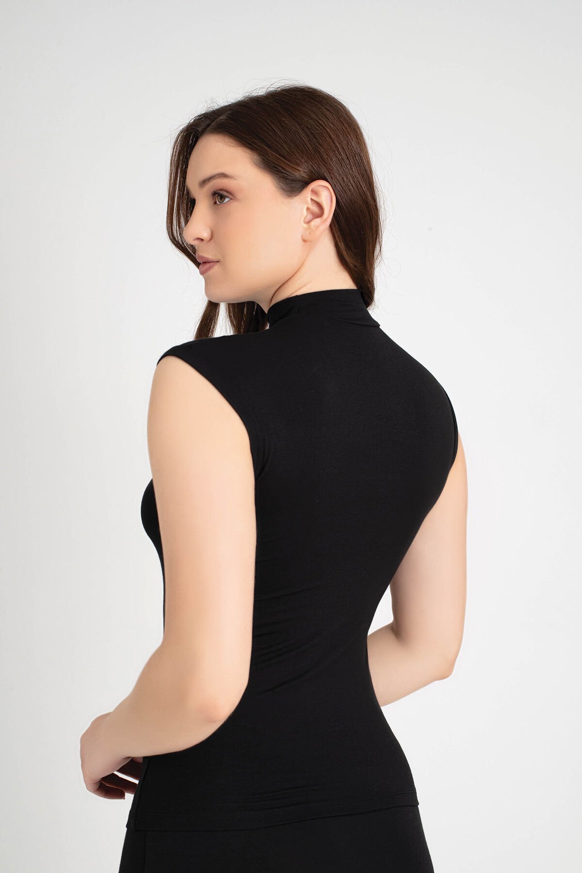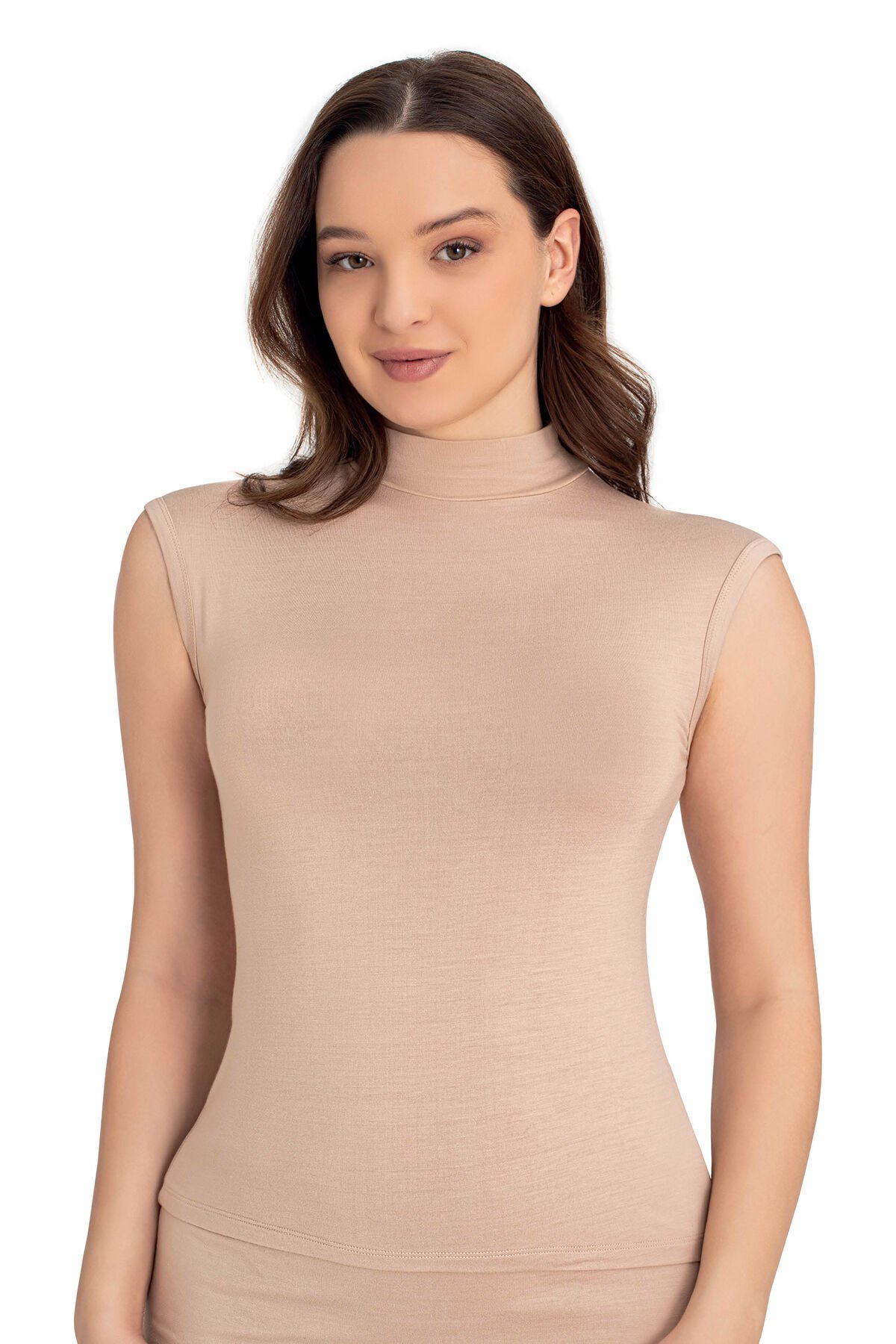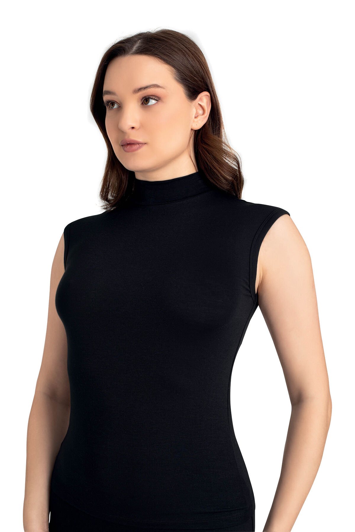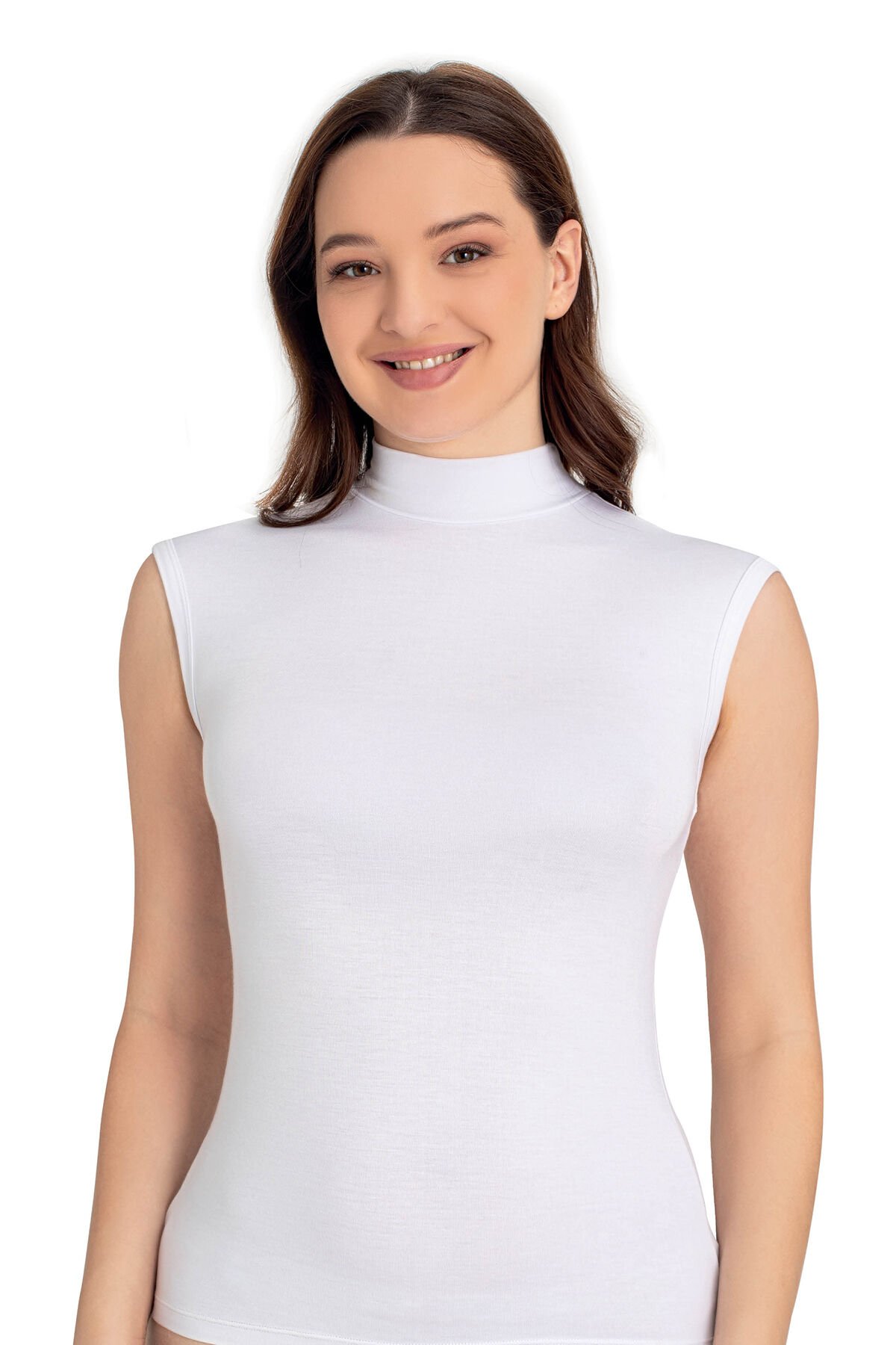 Senfoni Organik Bambu Bayan Yarım Balıkçı Yaka Kolsuz Body %92 Bambu – İç Giyim