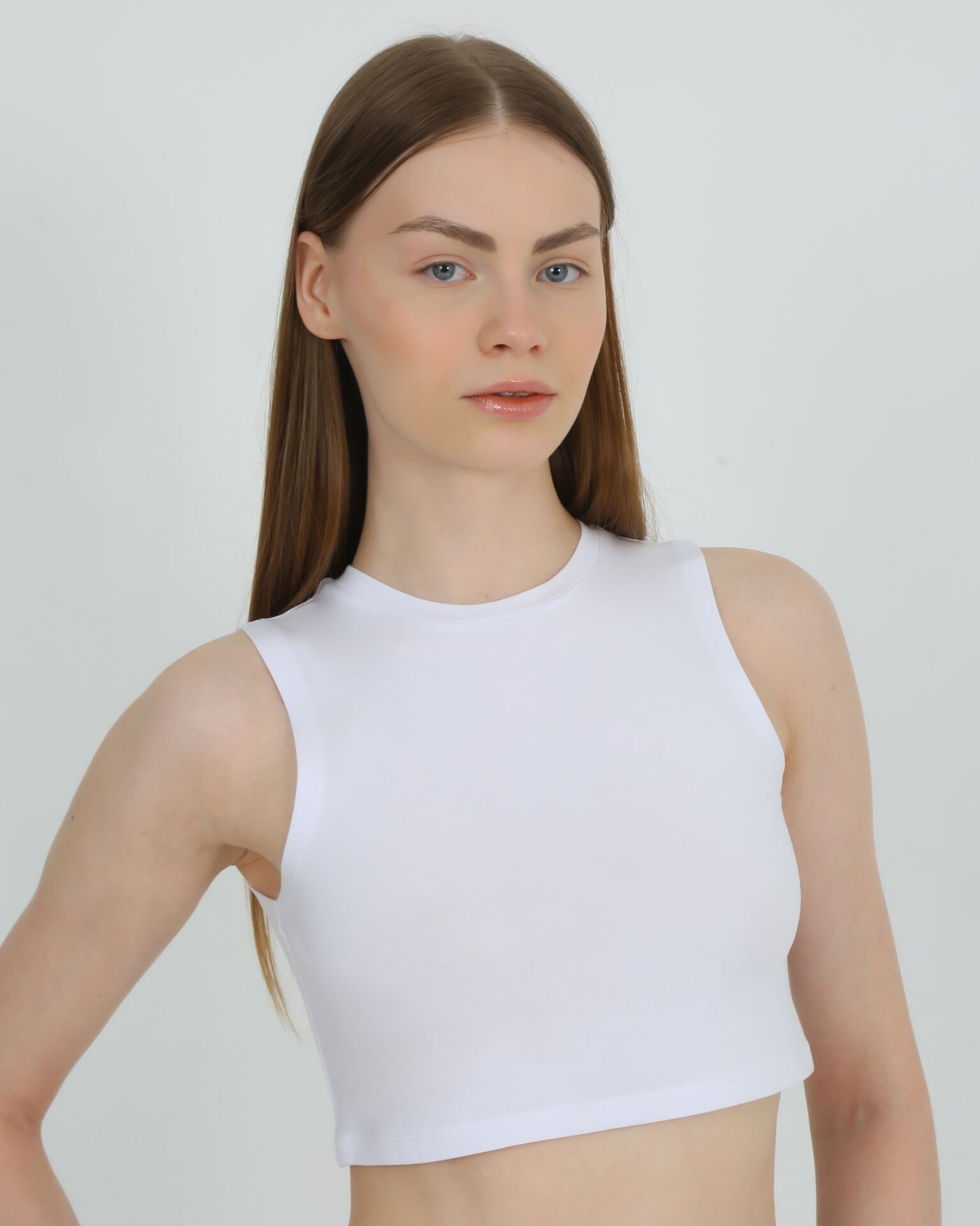 Senfoni Bayan Sıfır Kol Crop %46 Pamuk %46 Modal %8 Elastan – İç Giyim & Günlük Kullanım