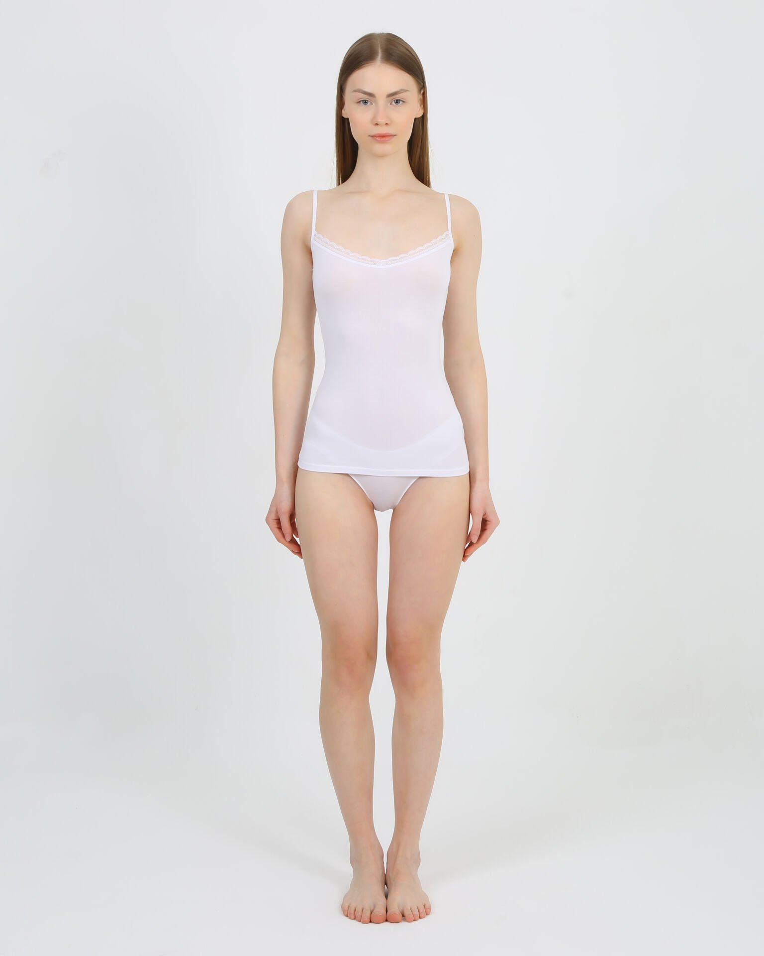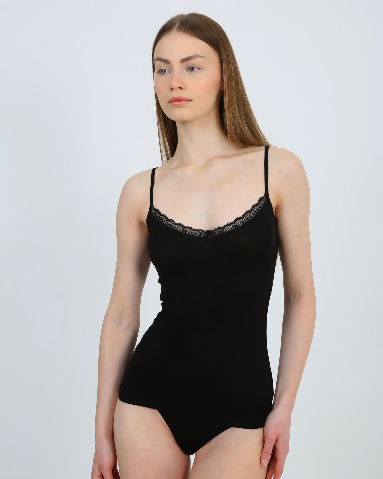 Senfoni Organik Bambu Bayan İnce Askılı Yakası Dantelli Atlet %92 Bambu – İç Giyim
